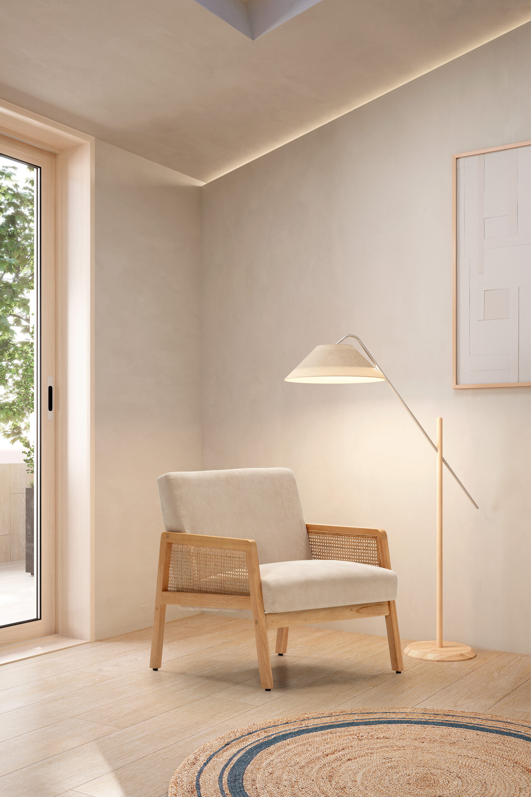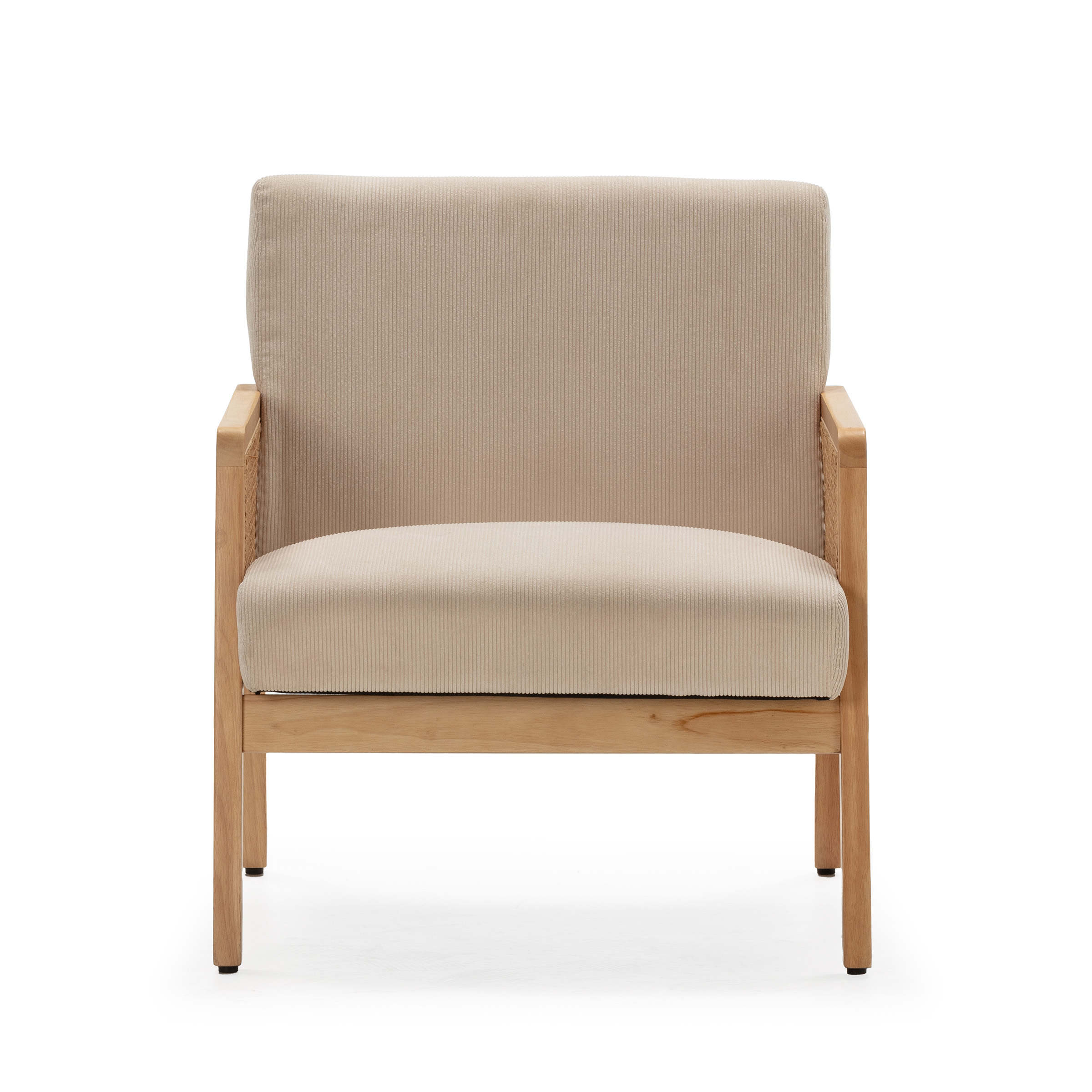 SILLON DEBRA BEIGE BRAZO MADERA/RATAN