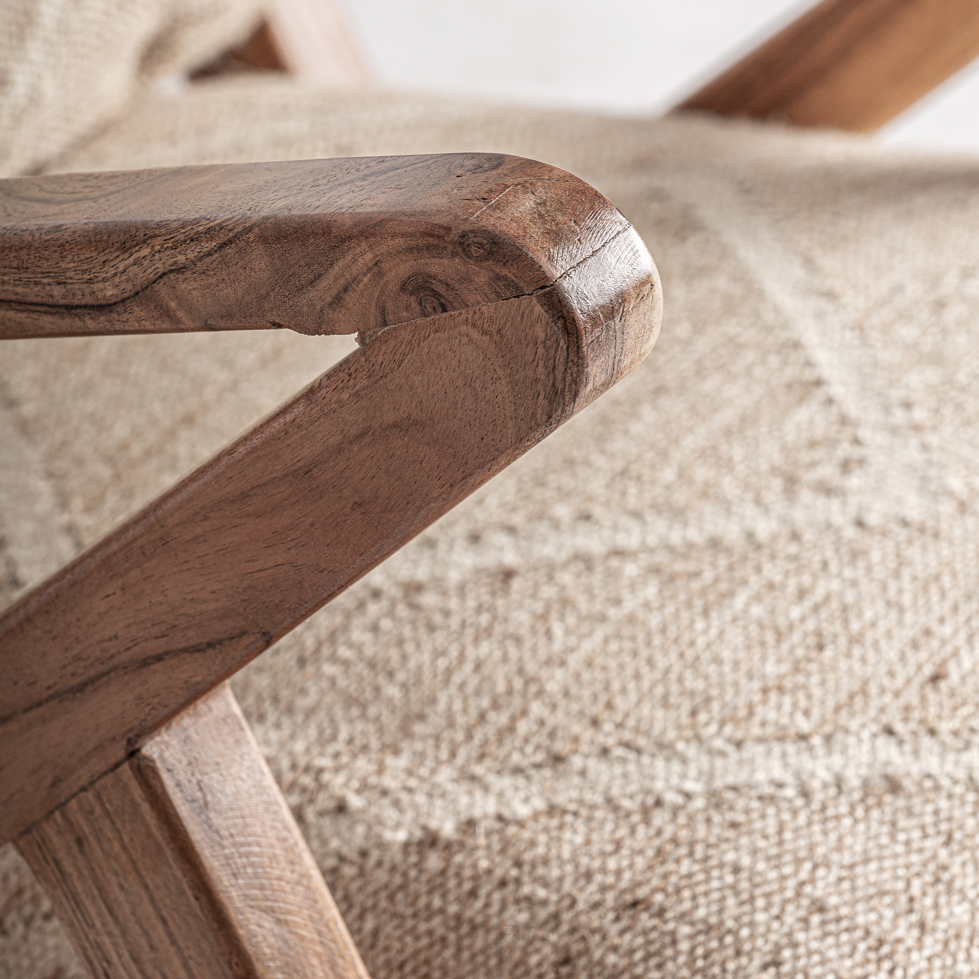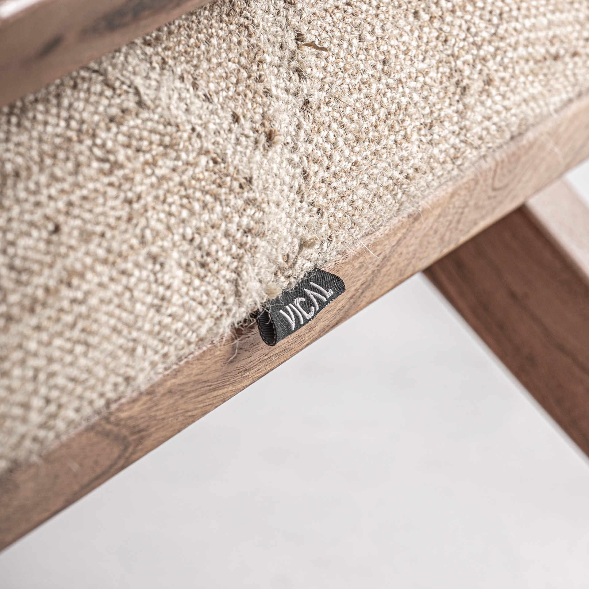 Sillón elgin de estilo vintage fabricado en yute en color tonos en marrón combinado con madera de mango en color marrón.