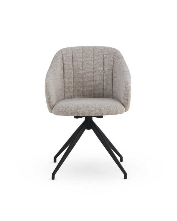 SILLON GIRATORIO TAPIZADO EN CHENILLA COLOR BEIGE Y PATAS DE MET