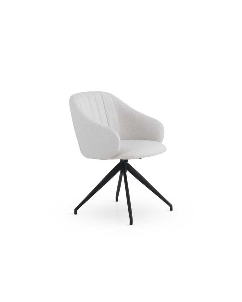 SILLON GIRATORIO TAPIZADO EN CHENILLA COLOR CREMA Y PATAS DE MET