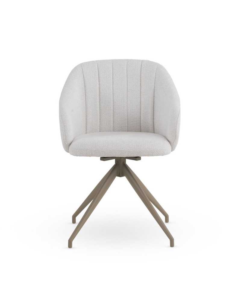 SILLON GIRATORIO TAPIZADO EN CHENILLA COLOR CREMA Y PATAS DE MET