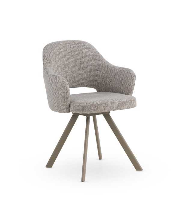 SILLON GIRATORIO TAPIZADO EN CHENILLA COLOR MARRON Y PATAS DE M