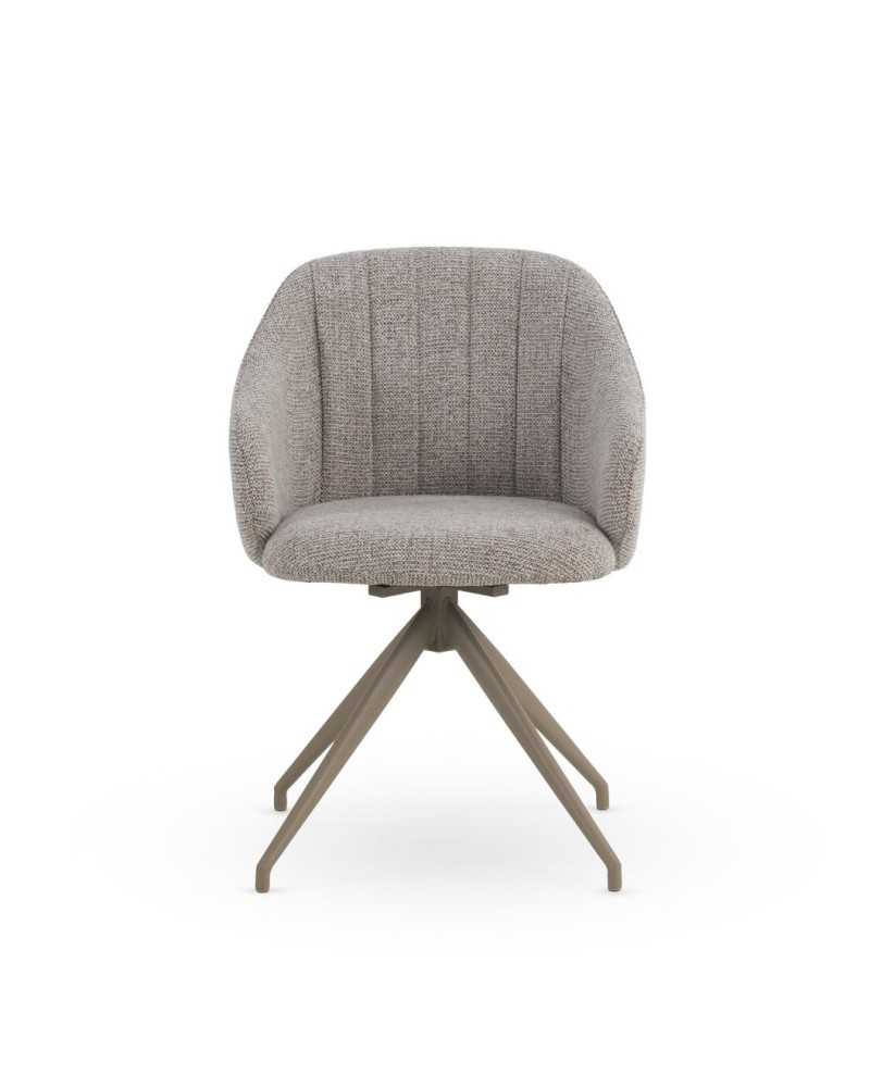 SILLON GIRATORIO TAPIZADO EN CHENILLA COLOR MARRON Y PATAS DE ME