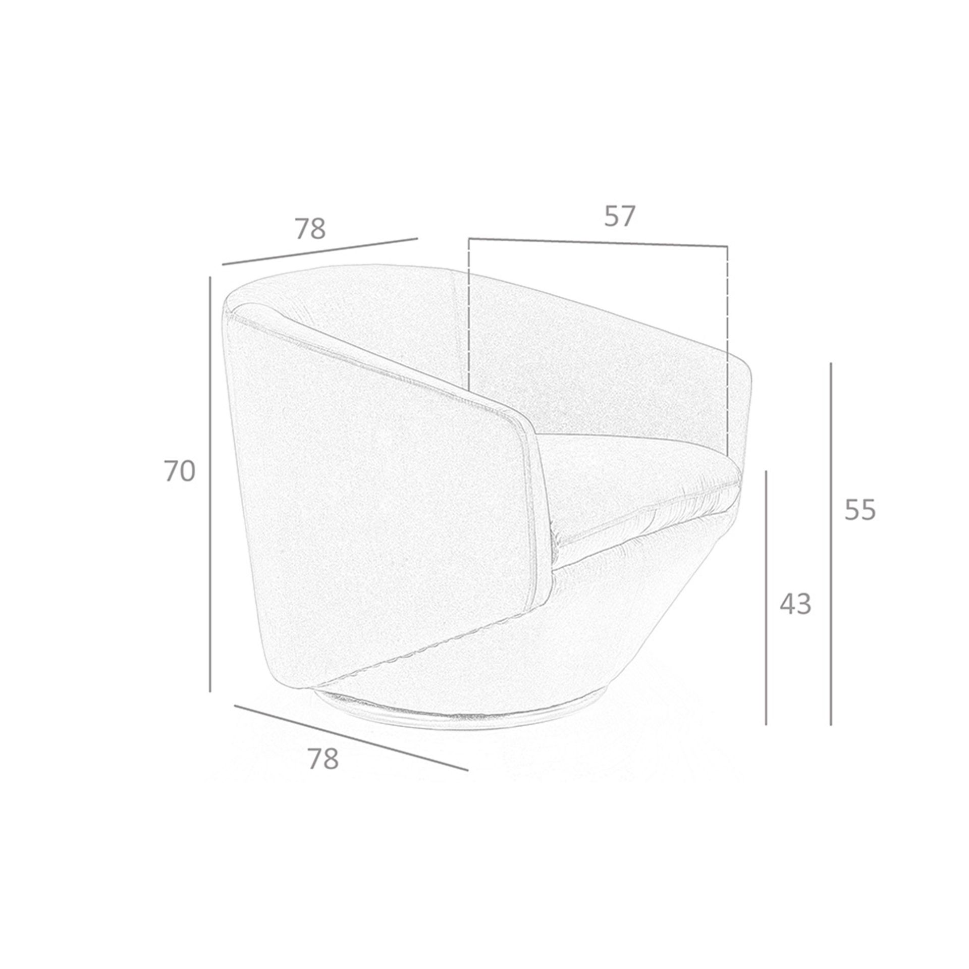 Sillón giratorio terciopelo melocotón modelo 5041 Angel Cerdá S.L.Sillón giratorio con reposabrazos de diseño moderno con asiento y respaldo tapizados en tela aterciopelada color melocotón. Tanto por su estilo, como por sus patas de acero inoxidable oscurecido, este sillón giratorio es la combinación perfecta entre diseño y confort.Medidas del producto: 78 x 78 x 70 cm.- El tapizado en tela aterciopelada de este sillón aportará un toque único y diferente, siendo un elemento práctico perfecto para su salón, zona de lectura o descanso. – Tanto por el tamaño de su asiento y su relleno en espuma de poliuretano de 25kg/m3, así como su cómodo respaldo le permitirá contar con el máximo confort, sin dejar de lado el diseño más actual. – Con sistema giratorio, aporta ese plus de practicidad y funcionalidad que busca para su hogar, sin dejar de lado la máxima elegancia.
