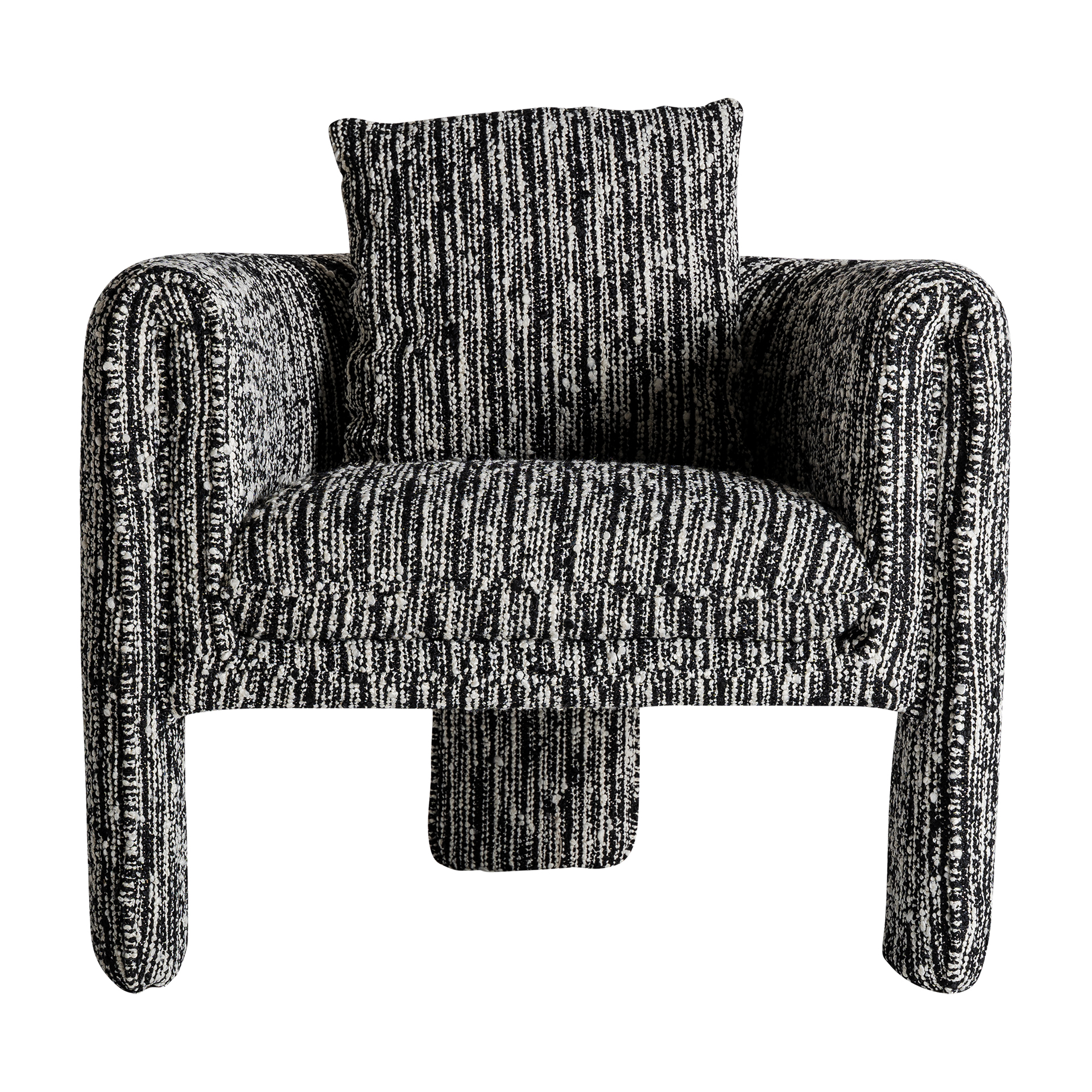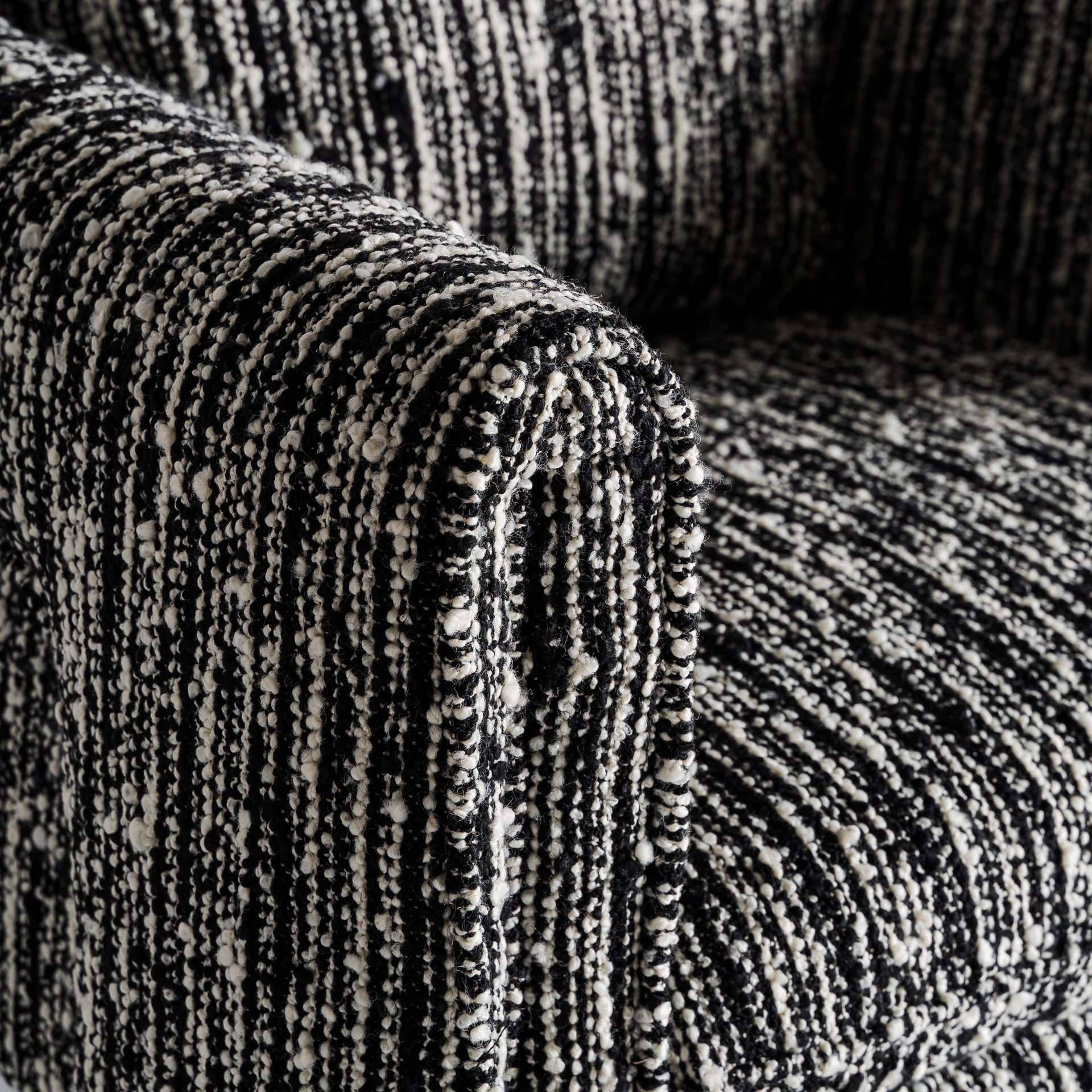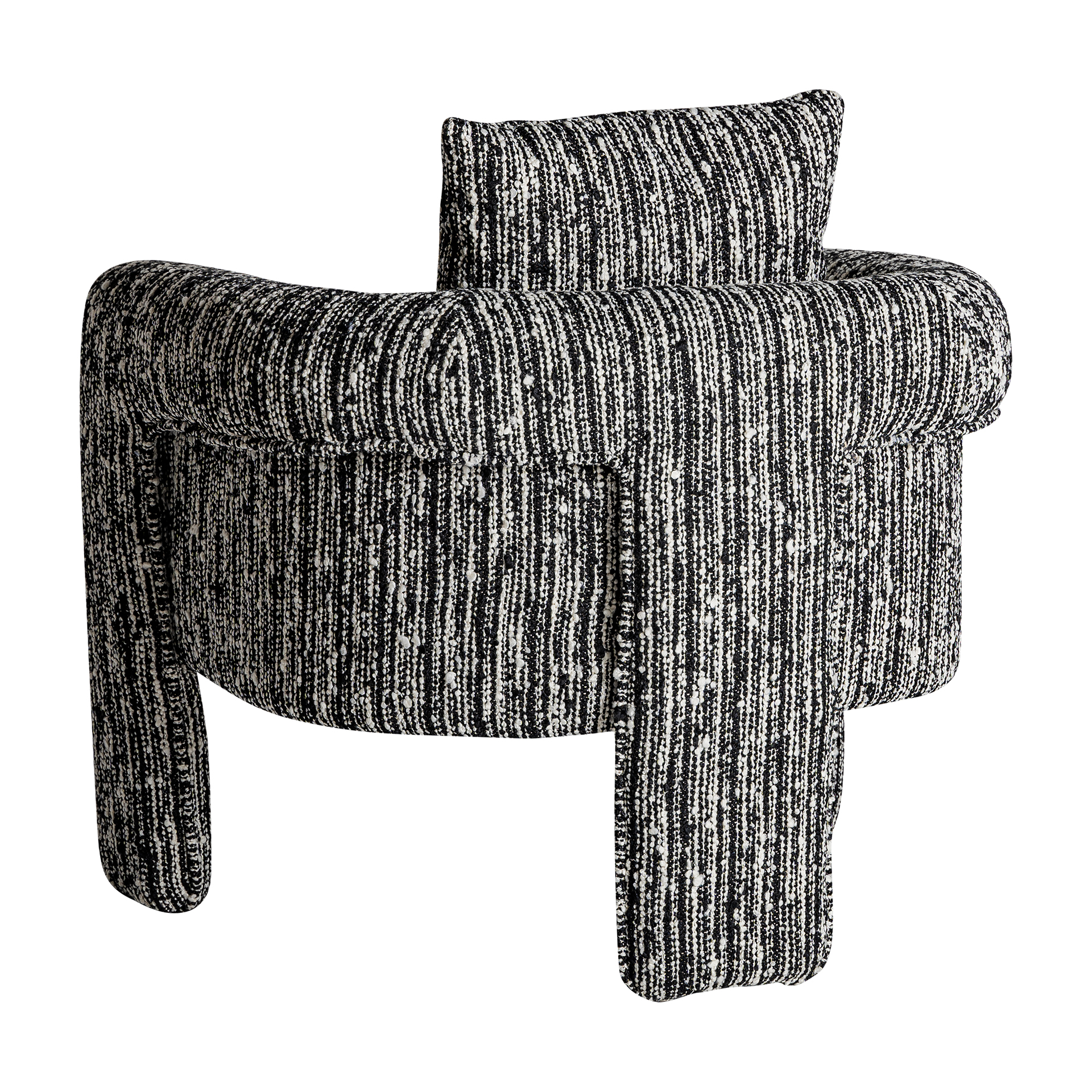 Sillón kostov de estilo contemporáneo fabricado en poliéster en color negro con acabado jaspeado combinado con madera de pino y madera contrachapada.