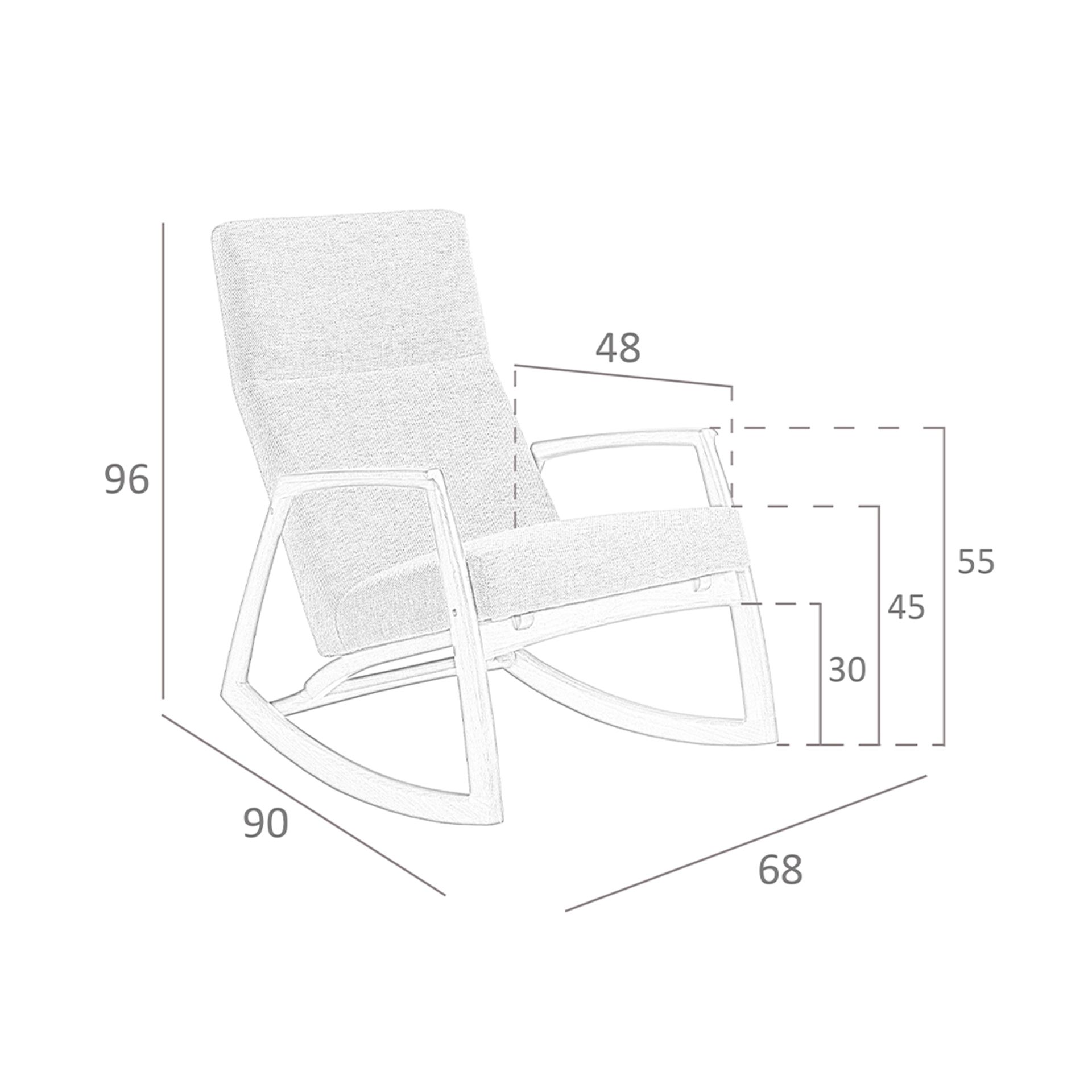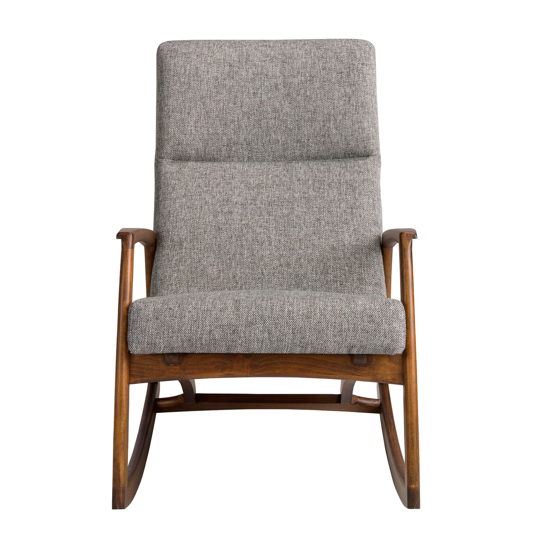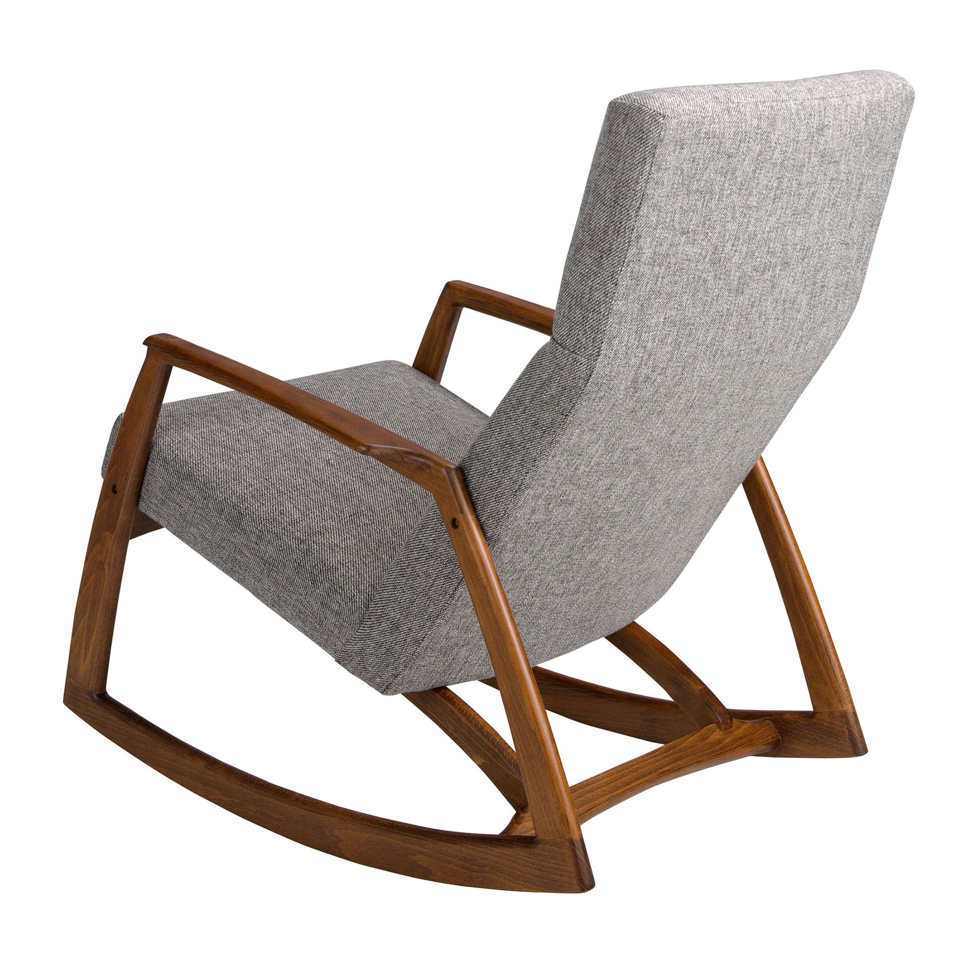 Sillón mecedora tela gris | – Tapizado del asiento: Tela- Tapizado del respaldo: Tela- Composición del tapizado: 100% Poliester- Material del relleno: Espuma de poliuretano de 25kg/m3 de densidad- Material de las patas: Madera en color nogal