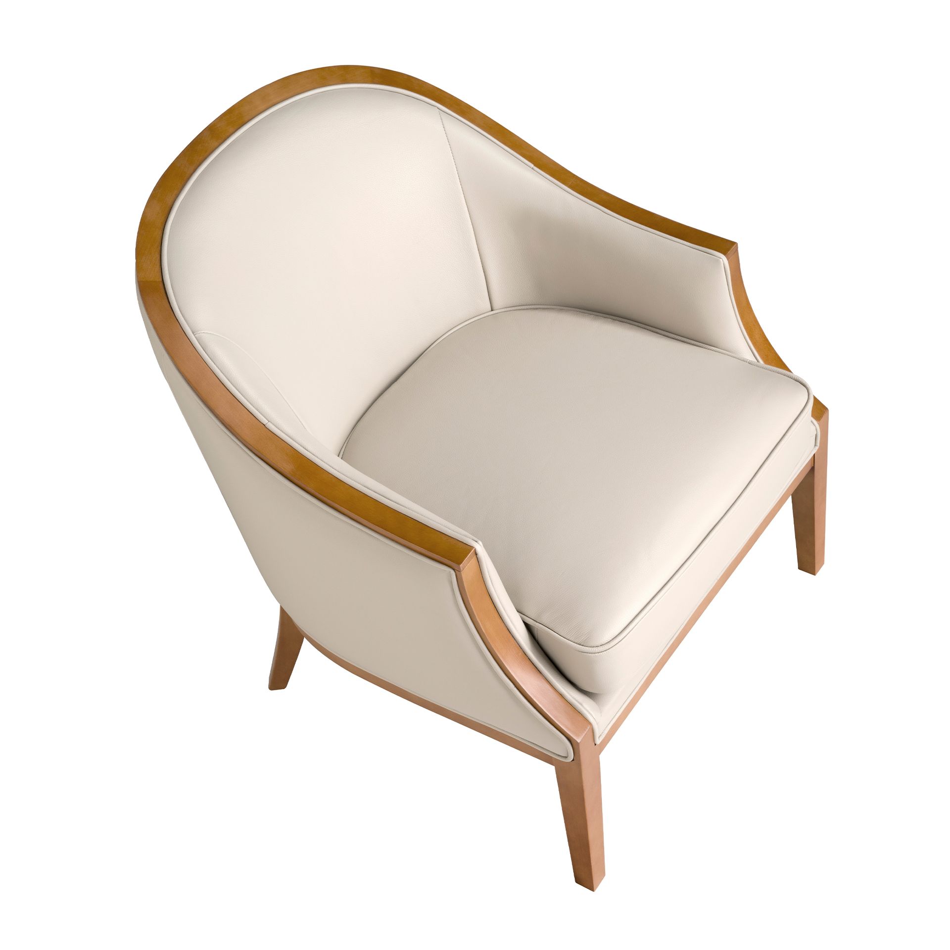 Sillón piel arena | – Tapizado del asiento: Piel de origen vacuno de 1.25 mm de espesor- Tapizado del respaldo: Piel de origen vacuno de 1.25 mm de espesor- Composición del tapizado: 100% Piel- Material del relleno: Espuma de poliuretano de 25kg/m3 de densidad- Material de las patas: Madera en color miel