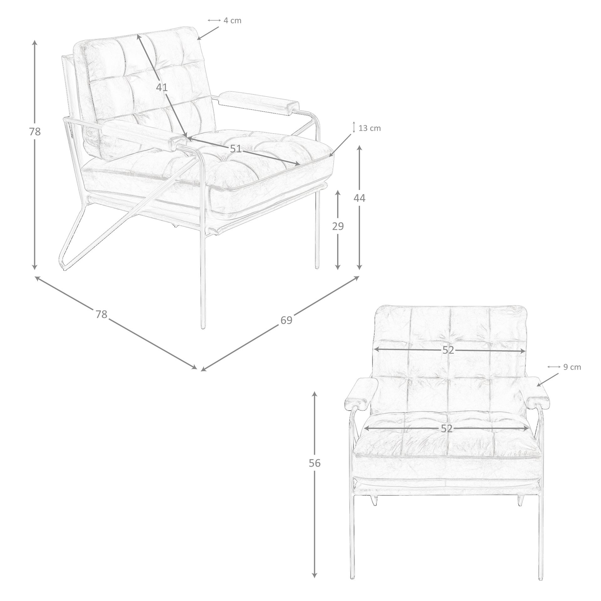 Sillón piel marrón coñac modelo 5166 Angel Cerdá S.L.Sillón con reposabrazos de diseño moderno con asiento y respaldo tapizados en piel de origen vacuno color marrón coñac. Tanto por su estilo, como por sus patas de acero inoxidable oscurecido, este sillón es la combinación perfecta entre diseño y confort.Medidas del producto: 69 x 78 x 78 cm.- La gran calidad de su tapizado en piel de origen vacuno de 1,25mm de espesor, le confiere además de elegancia y distinción, una gran durabilidad y comodidad. – Tanto por el tamaño de su asiento y su relleno en espuma de poliuretano de 25kg/m3, así como su cómodo respaldo le permitirá contar con el máximo confort, convirtiéndose en una pieza clave para sus momentos de relax o descanso. – El acabado capitoné en el respaldo de este sillón confidente, brinda un toque diferente y exclusivo. Una pieza de estilo moderno pensada para relajarse y disfrutar de la mayor comodidad.