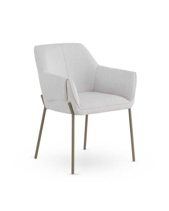 SILLON TAPIZADO EN CHENILLA COLOR CREMA Y PATAS DE METAL COLOR T