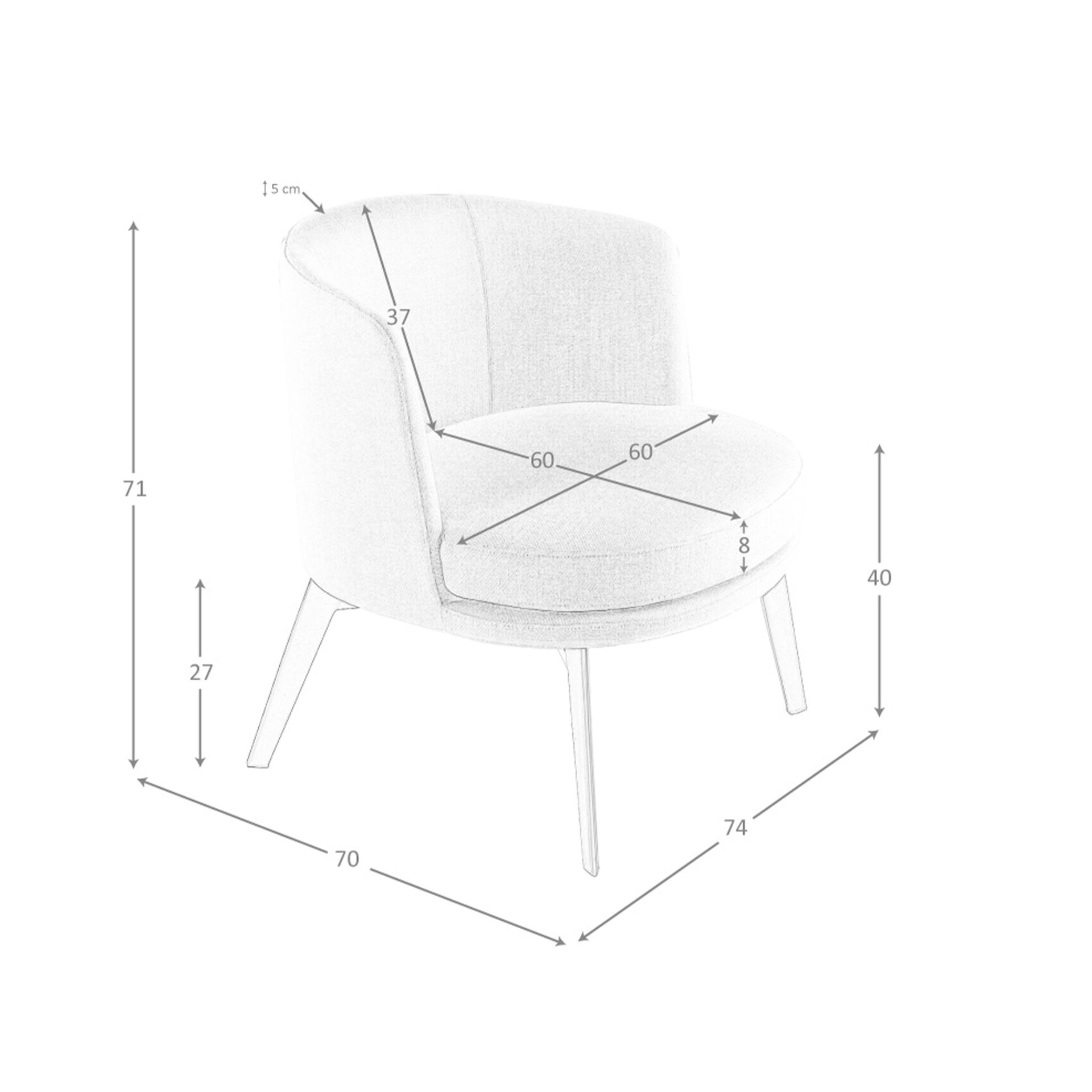 Sillón tela crema | – Tapizado del asiento: Tela- Tapizado del respaldo: Tela- Composición del tapizado: 100% Poliester- Material del relleno: Espuma de poliuretano de 25kg/m3 de densidad- Material de las patas: Acero inoxidable color marrón metal