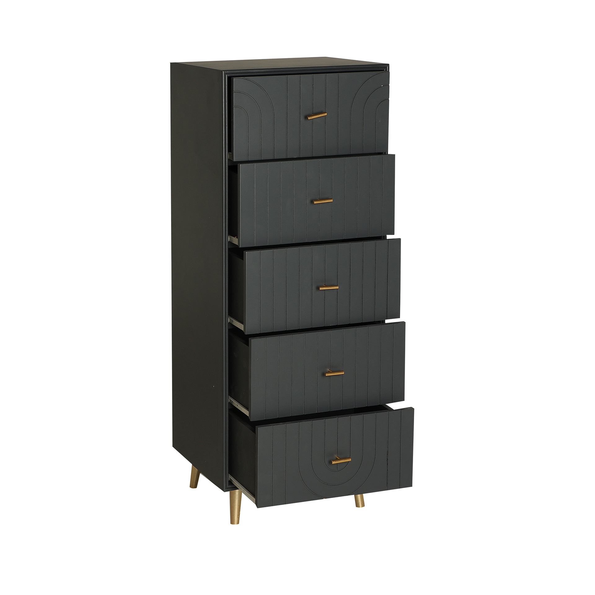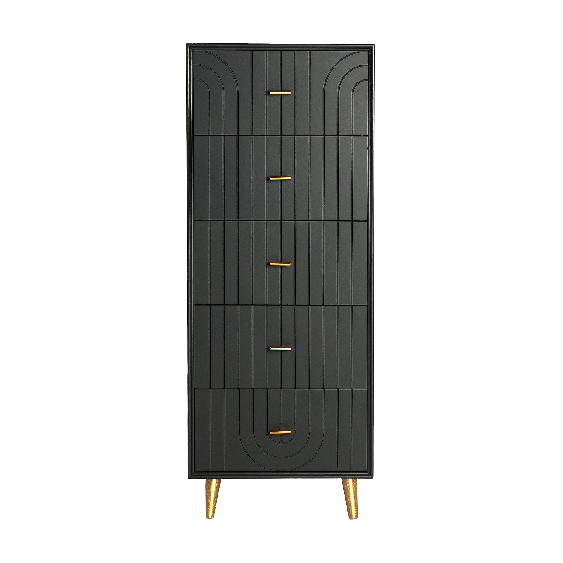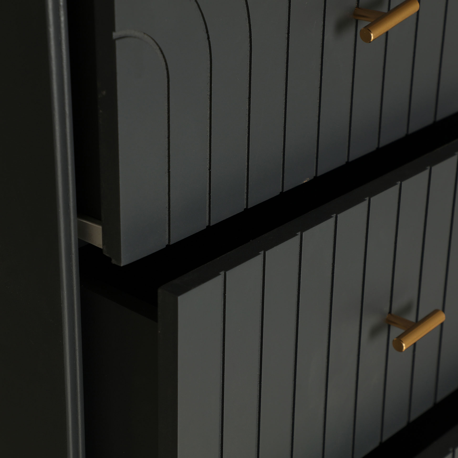 Sinfonier rectangular tremes de estilo art deco, fabricado en madera dm en color gris con acabado oscuro, combinado con hierro en color oro con acabado brillo.