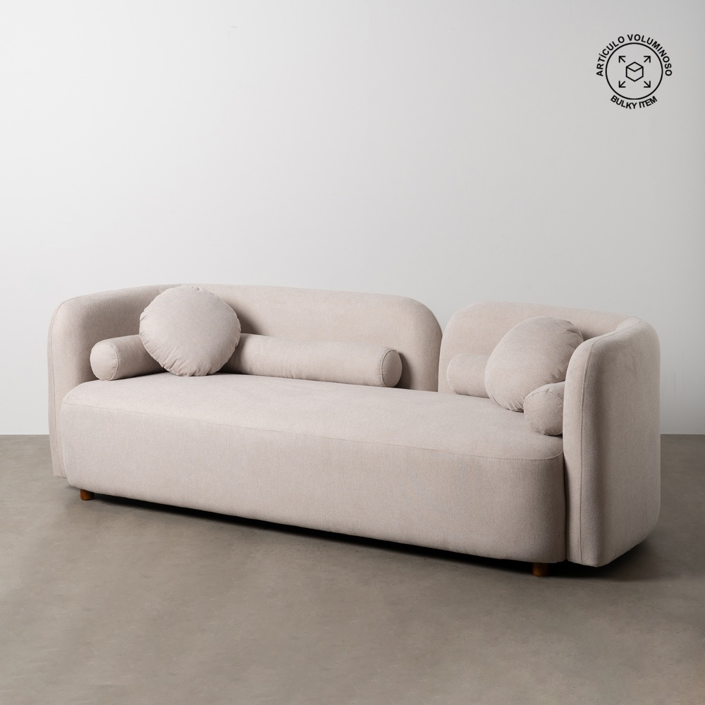 SOFÁ 3 PLAZAS BEIGE TEJIDO-MADERA 223 X 88 X 72 CM IXIA