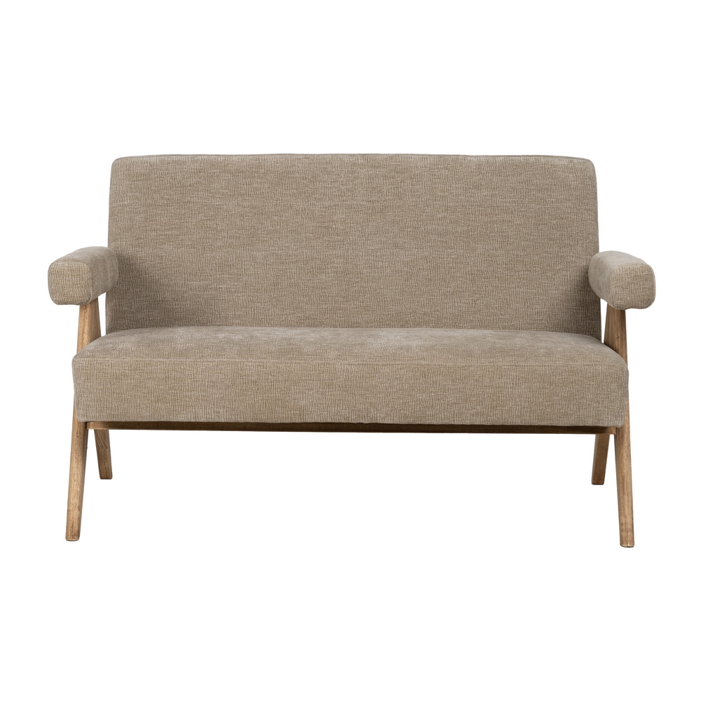 SOFÁ BEIGE TEJIDO-MADERA SALÓN 134 X 76 X 85 CM Material tejido: poliéster. Estructura: Plywood. Relleno: Foam,PU. Densidad 30kg/m3. Gramaje:450gr/m2. Patas: Madera de caucho. Altura asiento: 44cm. Altura patas: 27.5cm. Altura de los brazos:23cm. Máximo peso soportado: 200kg. No desenfundable. Las patas requieren montaje.