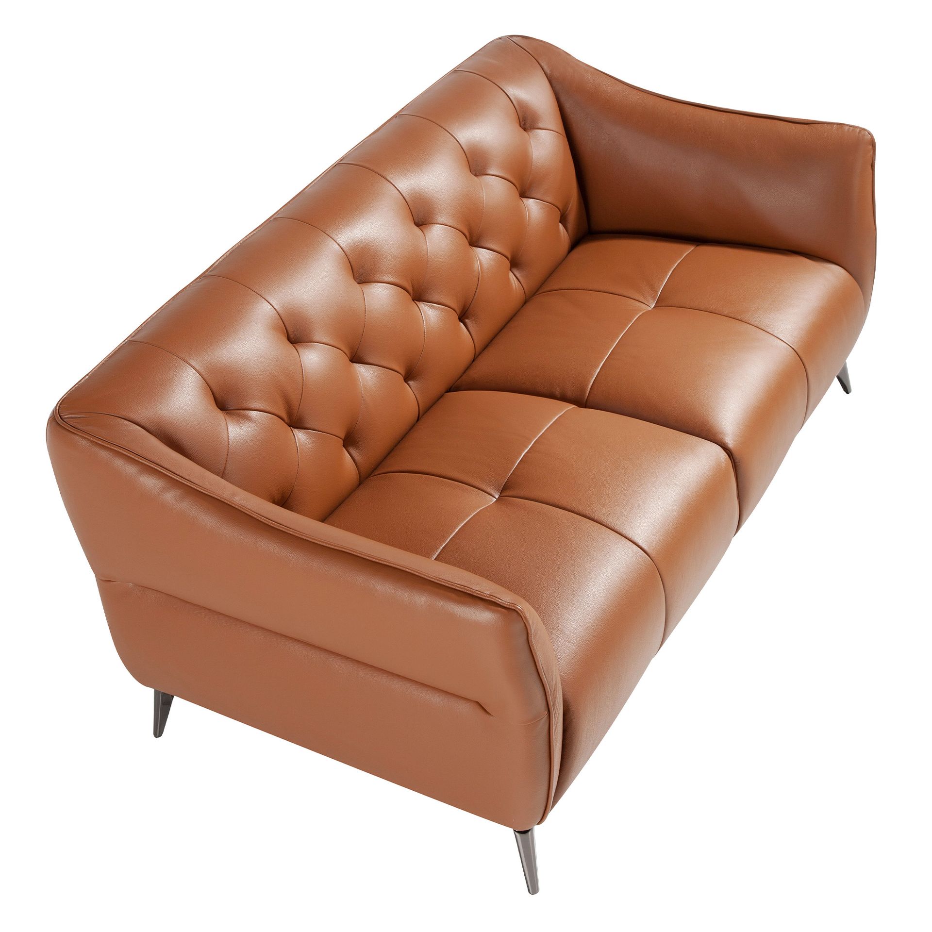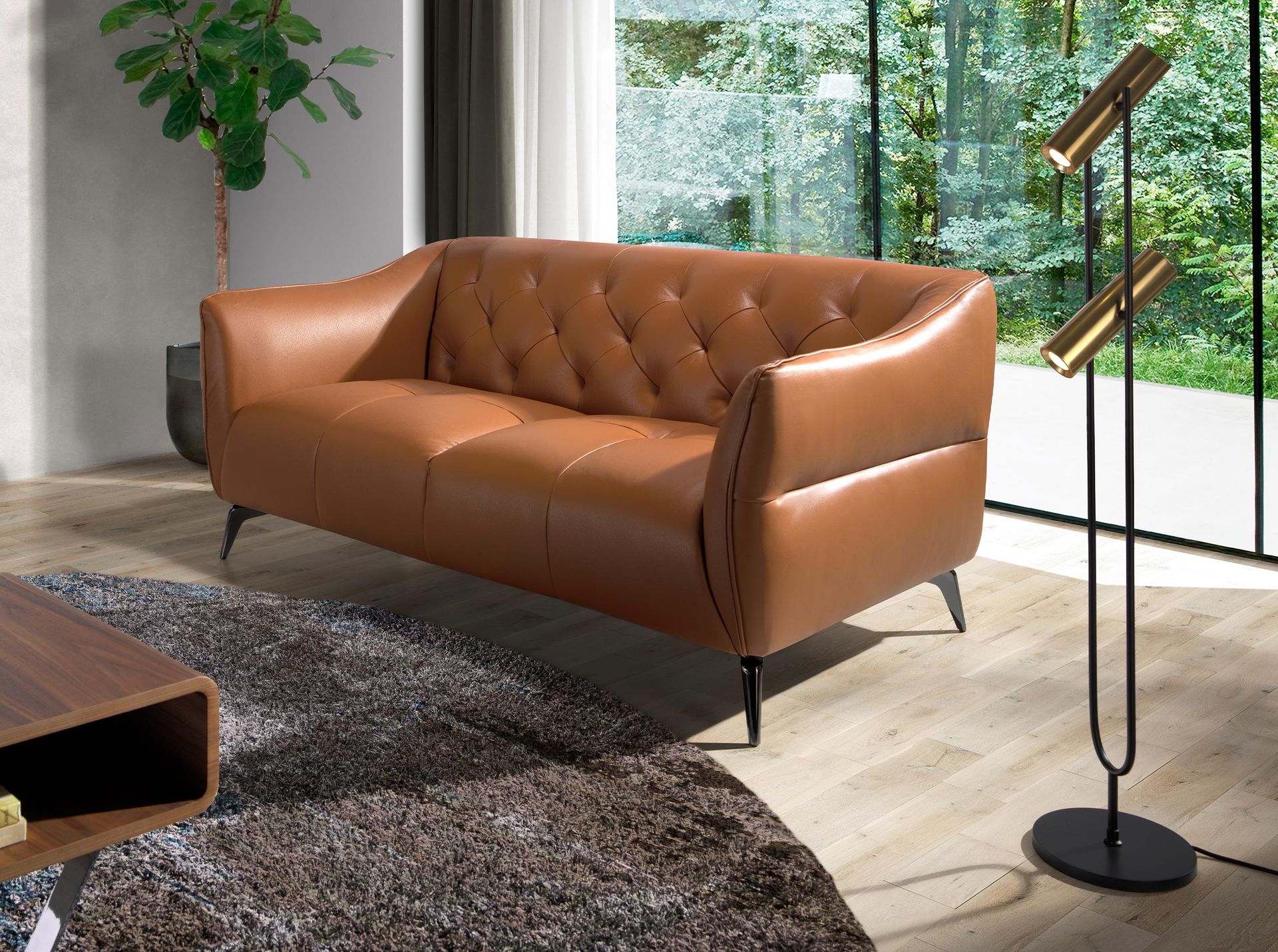 Sofá Chester 2 plazas piel marrón modelo 6168 Angel Cerdá S.L.Sofá Chester de 2 plazas de diseño moderno tapizado en piel de origen vacuno color marrón. Tanto por su estilo, como por sus patas de acero inoxidable oscurecido, este sofá aportará el toque de vanguardia y elegancia que busca para su hogar.Medidas del producto: 171 x 95 x 77 cm.- La gran calidad de su tapizado en piel de origen vacuno de 1,5mm de espesor con efecto capitoné, le confiere además de elegancia y distinción, una gran durabilidad y comodidad. – Todos nuestros sofás están fabricados con materiales de la más alta calidad, con una robusta estructura interna fabricada en madera maciza de pino natural.