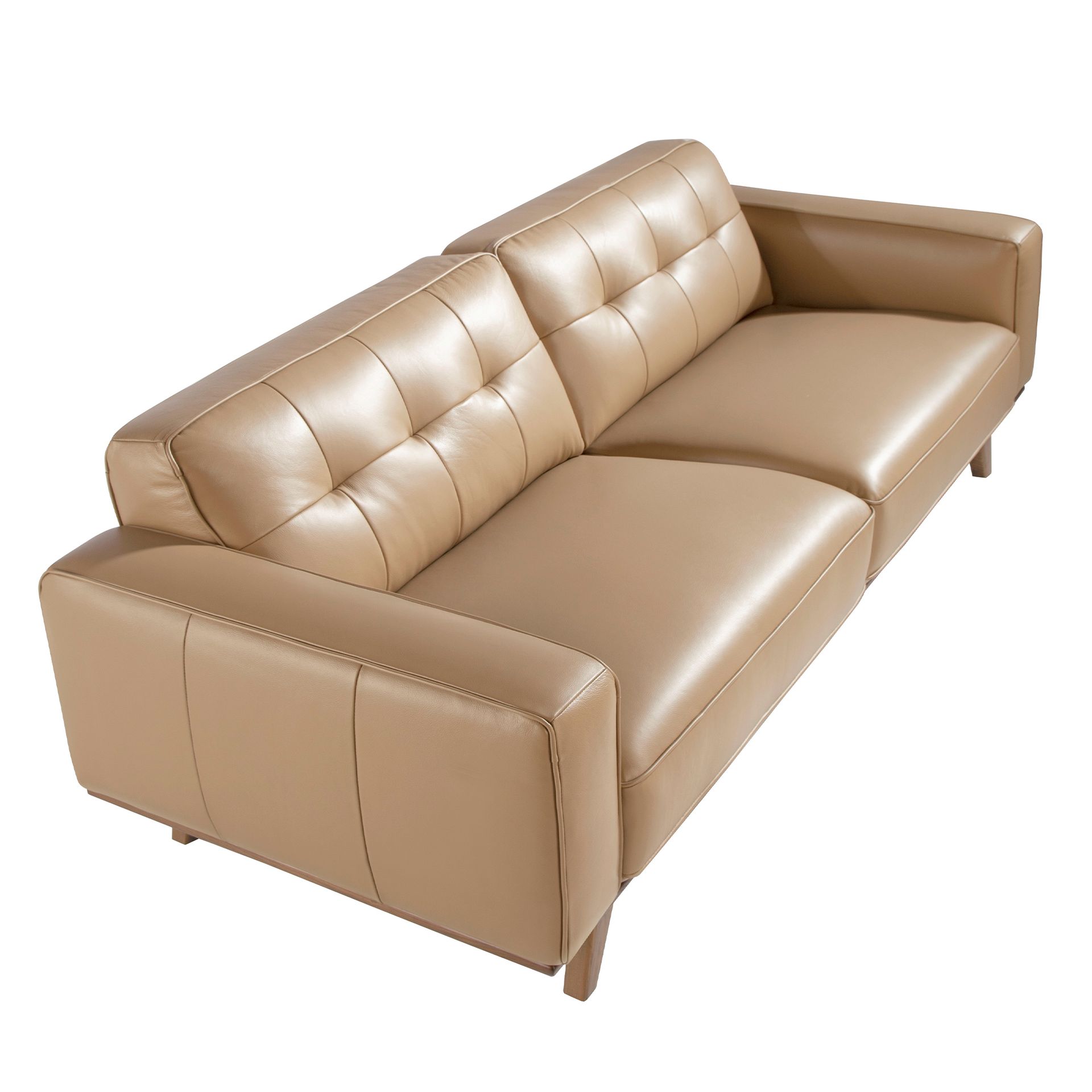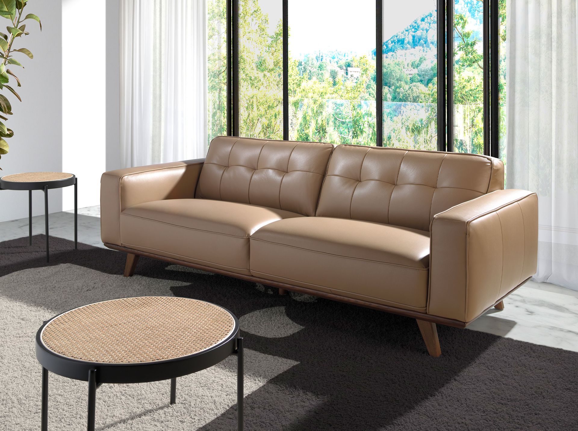 Sofá Chester 3 plazas piel arena modelo 6120 Angel Cerdá S.L.Sofá Chester de 3 plazas de diseño moderno tapizado en piel de origen vacuno color arena. Tanto por su estilo, como por sus patas de madera en color nogal, este sofá aportará el toque de vanguardia y elegancia que busca para su hogar.Medidas del producto: 227 x 95 x 78 cm.- La gran calidad de su tapizado en piel de origen vacuno de 1,5mm de espesor con efecto capitoné, le confiere además de elegancia y distinción, una gran durabilidad y comodidad. – Todos nuestros sofás están fabricados con materiales de la más alta calidad, con una robusta estructura interna fabricada en madera maciza de pino natural.