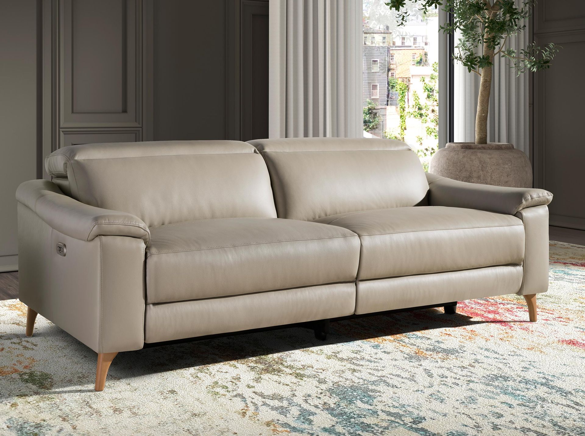 Sofá relax 3 plazas piel gris taupe modelo 6190 Angel Cerdá S.L.Sofá relax de 3 plazas de diseño moderno tapizado en piel de origen vacuno color gris taupe con reposacabezas para garantizar una mayor comodidad. Tanto por su estilo, como por sus patas de madera en color miel, este sofá aportará el toque de vanguardia y elegancia que busca para su hogar.Sus 2 sistemas de relax eléctrico, le aportan el extra de comodidad que necesita para relajarse.Medidas del producto: 208 x 104 x 102 cm.- La gran calidad de su tapizado en piel de origen vacuno de 1,5mm de espesor, le confiere además de elegancia y distinción, una gran durabilidad y comodidad. – Este sofá cuenta con sistema relax, lo que le aporta el extra de comodidad que necesita para relajarse. Su accionado con dos botones eléctricos le ofrece además, una mayor practicidad y funcionalidad, pudiendo regular de forma independiente su reposacabezas y respaldo, y reposapiés. – Sus reposacabezas articulados independientes le confieren ese extra de confort y adaptabilidad, sin dejar de lado la más alta tendencia. – Todos nuestros sofás están fabricados con materiales de la más alta calidad, con una robusta estructura interna fabricada en madera maciza de pino natural. – Cuidando hasta el más mínimo detalle, su puerto USB le permitirá tener cerca sus dispositivos, garantizando la combinación perfecta entre diseño y versatilidad.
