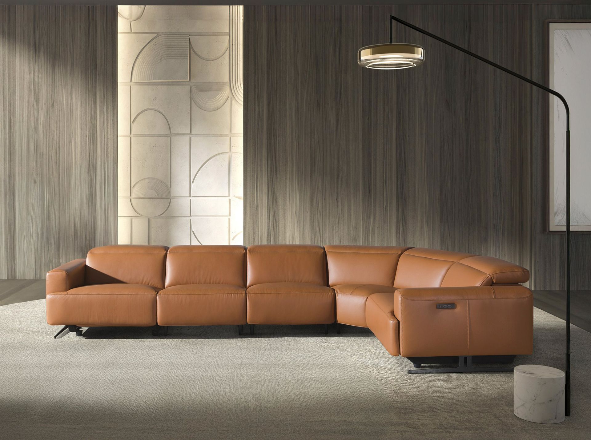 Sofá rinconera relax modular piel marrón | – Material del tapizado: Piel de origen vacuno de 1.25 mm de espesor- Composición del tapizado: 100% Piel- Material del relleno: Espuma de poliuretano de 30kg/m3 de densidad- Material de las patas: Acero inoxidable pintado en epoxi negro- Material de la estructura interna: Madera maciza de pino natural