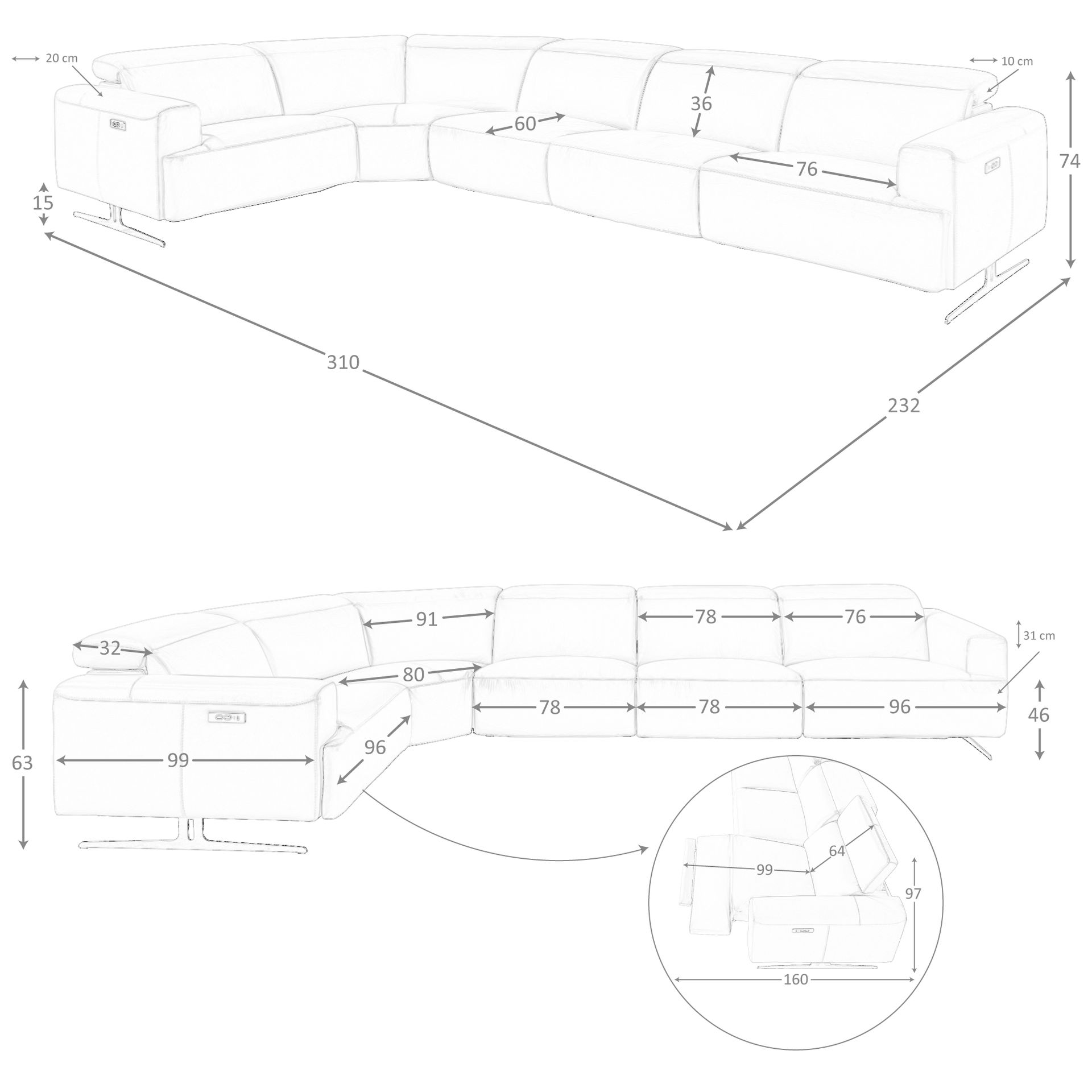 Sofá rinconera relax modular piel marrón modelo 6263 Angel Cerdá S.L.Sofá rinconera relax modular de 5 plazas de diseño moderno tapizado en piel de origen vacuno color marrón con reposacabezas para garantizar una mayor comodidad. Tanto por su estilo, como por sus patas de acero inoxidable pintado en epoxi negro, este sofá aportará el toque de vanguardia y elegancia que busca para su hogar.Sus 2 sistemas de relax eléctrico, le aportan el extra de comodidad que necesita para relajarse.Medidas del producto: 310 x 310 x 97 cm.- La gran calidad de su tapizado en piel de origen vacuno de 1,5mm de espesor, le confiere además de elegancia y distinción, una gran durabilidad y comodidad. – Este sofá cuenta con sistema relax, lo que le aporta el extra de comodidad que necesita para relajarse. Su accionado eléctrico le ofrece además, una mayor practicidad y funcionalidad. – Sus reposacabezas articulados independientes le confieren ese extra de confort y adaptabilidad, sin dejar de lado la más alta tendencia. – Todos nuestros sofás están fabricados con materiales de la más alta calidad, con una robusta estructura interna fabricada en madera maciza de pino natural. – Cuidando hasta el más mínimo detalle, sus puertos USB y USB-C le permitirá tener cerca sus dispositivos, garantizando la combinación perfecta entre diseño y versatilidad. – Su diseño modular, permite poder montarlo tanto a extensión derecha como izquierda, pudiendo adaptarlo al espacio según tus necesidades y el espacio de tu salón.