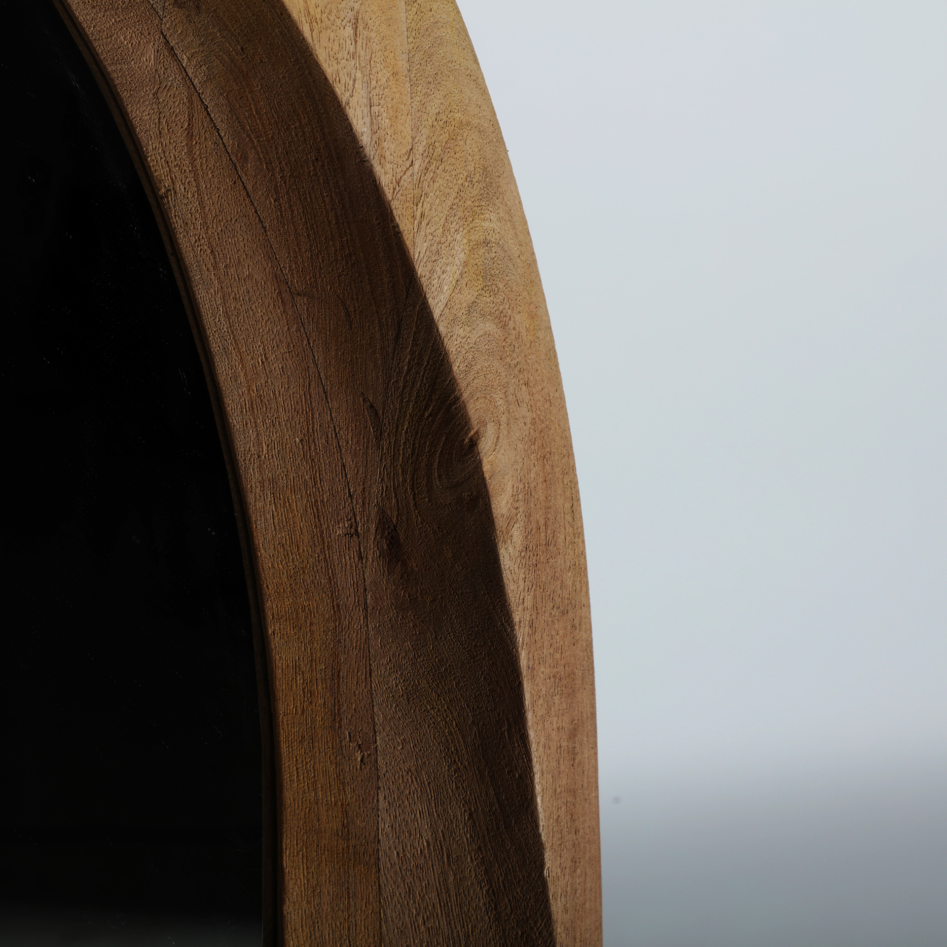 Espejo oval sjeld de estilo contemporáneo, fabricado en madera de mango en color marrón claro, combinado con espejo.