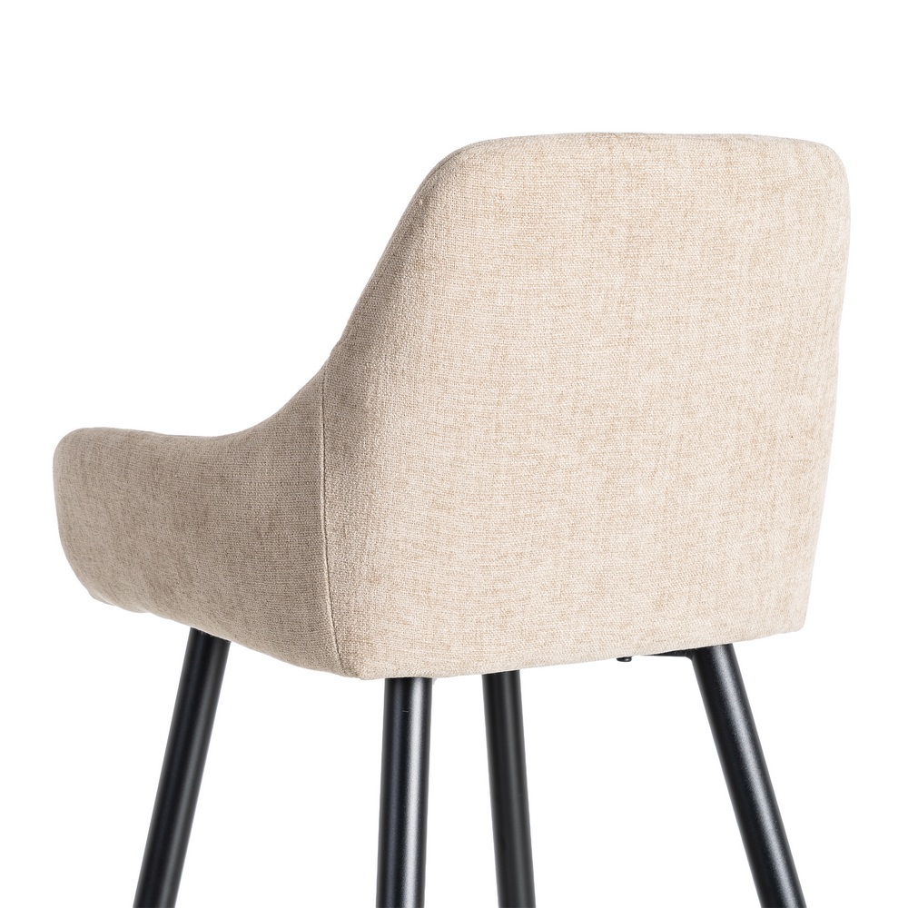 TABURETE BEIGE TEJIDO-METAL SALÓN 47 X 47 X 93 CM Material: tejido, metal. Altura asiento: 65cm. Ancho asiento: 36cm. Profundidad asiento: 35cm. Altura respaldo: 30cm. Altura reposabrazos: 10cm (75cm desde el suelo). No apilable. Cuample la normativa EN16139 (catering).