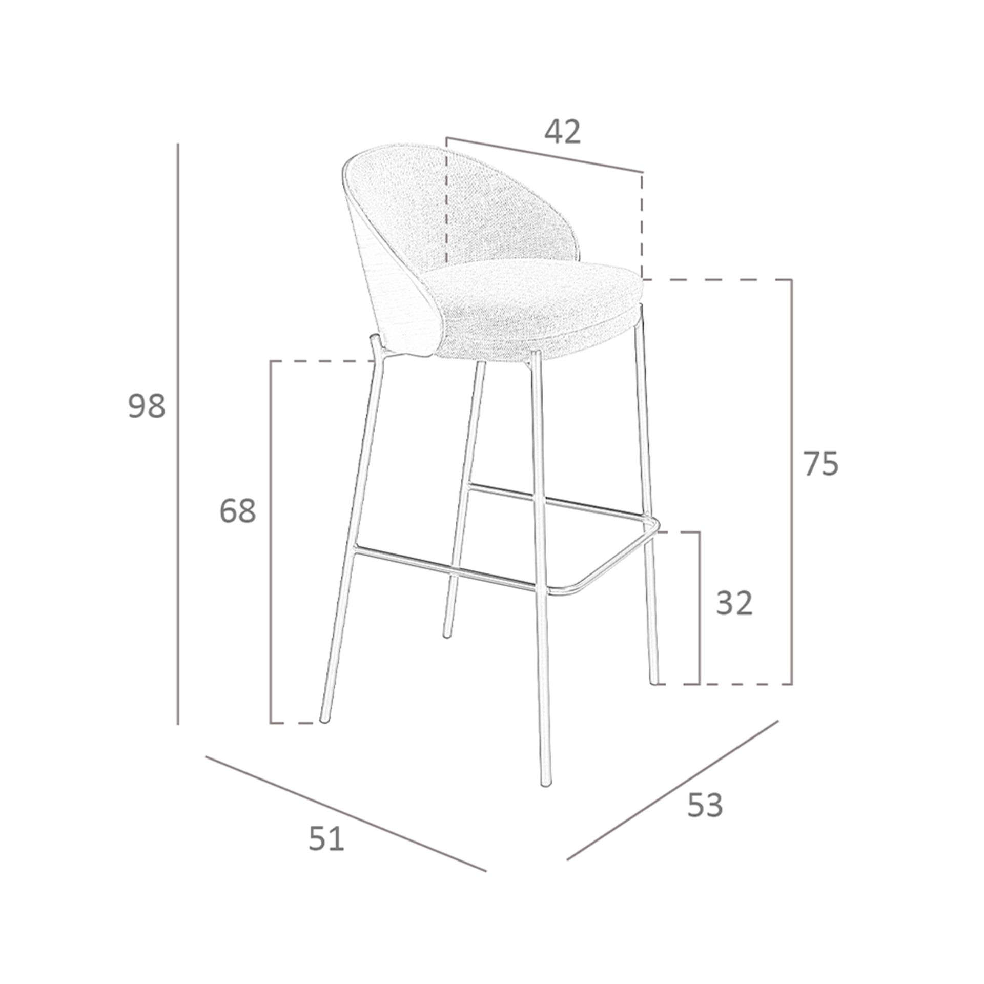 Taburete tela gris y nogal modelo 4127 Angel Cerdá S.L.Taburete de diseño moderno con asiento y respaldo tapizados en tela color gris. El elegante acabado en madera chapada en nogal natural aporta el toque de distinción que busca para su hogar. Sus patas de acero inoxidable color negro de estilo vanguardista a la vez que atemporal, lo convertirán en el must have de su cocina o comedor. Este taburete de la firma Angel Cerdá, aúna el estilo único y personal de la marca, así como la mayor comodidad y estabilidad, gracias a la alta calidad de su tapizado y la original estructura de patas.Medidas del producto: 53 x 51 x 98 cm.- Gracias al tapizado en tela de este taburete, conseguirá el toque distintivo y diferente que busca para su zona de cocina o comedor. – Sus patas robustas y de carácter lineal lo convierten en una pieza que complementa al 100% diseño, confort y el estilo más vanguardista. – Si busca el taburete perfecto para su cocina o comedor, ésta es una opción ideal para aunar el toque moderno y de vanguardia que necesita, con la mayor calidad y funcionalidad. – El tamaño de su asiento y su relleno en espuma de poliuretano de 25kg/m3, así como su diseño de respaldo envolvente le permitirá contar con el máximo confort. – Su original respaldo de madera chapada en nogal de 0,5 mm de espesor, ofrece ese toque de tendencia y personalidad que caracteriza nuestra marca. Toda una pieza de diseño que se convertirá en uno de los elementos clave en la decoración de su hogar.