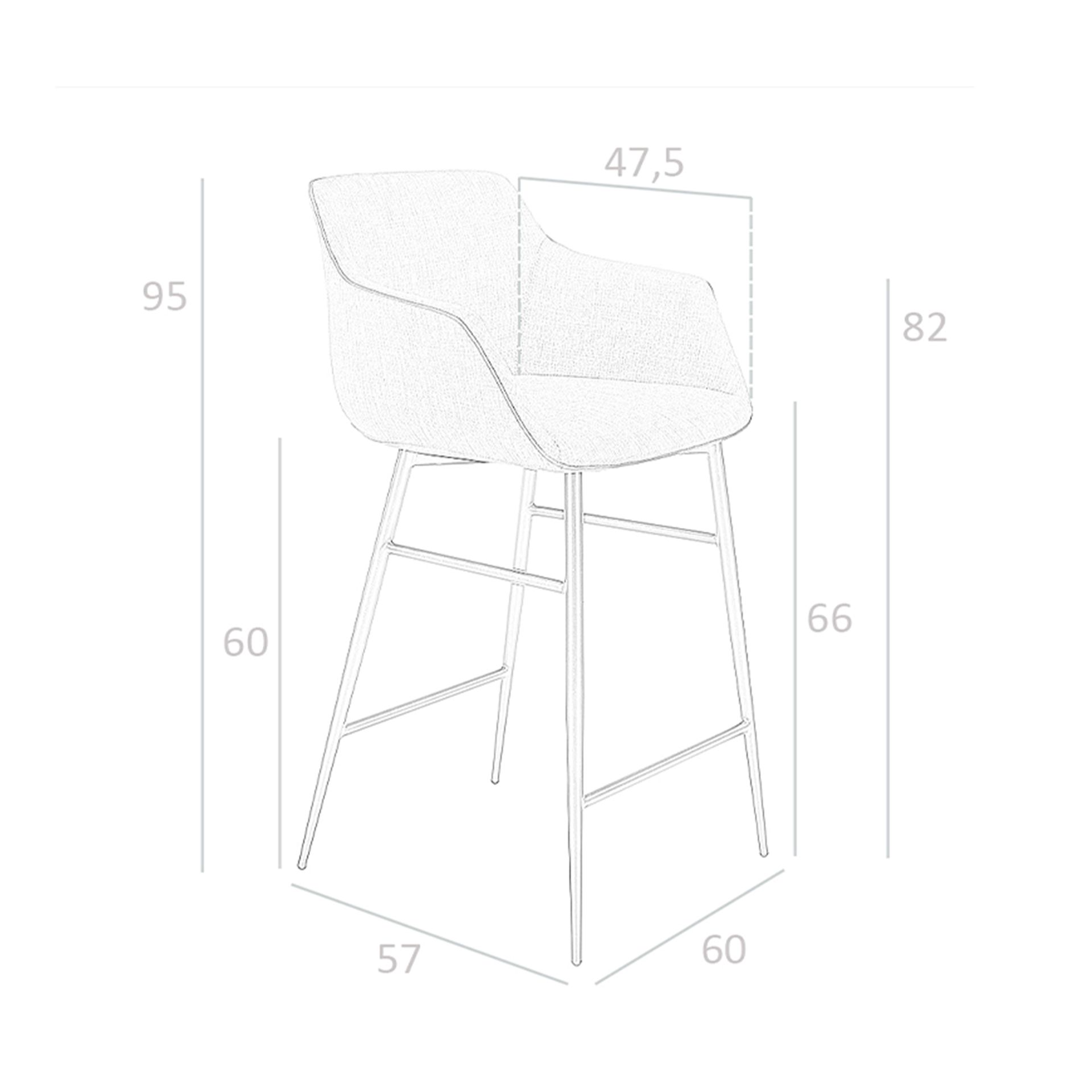 Taburete tela gris modelo 4089 Angel Cerdá S.L.Taburete con reposabrazos de diseño moderno con asiento y respaldo tapizados en tela color gris. Sus patas de acero inoxidable color negro de estilo vanguardista a la vez que atemporal, lo convertirán en el must have de su cocina o comedor. Este taburete de la firma Angel Cerdá, aúna el estilo único y personal de la marca, así como la mayor comodidad y estabilidad, gracias a la alta calidad de su tapizado y la original estructura de patas.Medidas del producto: 60 x 57 x 96 cm.- Gracias al tapizado en tela de este taburete, conseguirá el toque distintivo y diferente que busca para su zona de cocina o comedor. – El acero negro de sus patas aporta un toque de modernidad y distinción. – Su diseño versátil y funcional, lo convierte en un taburete ideal para cualquier tipo de salón, comedor o cocina. – El tamaño de su asiento y su relleno en espuma de poliuretano de 25kg/m3, así como su diseño de respaldo envolvente le permitirá contar con el máximo confort.