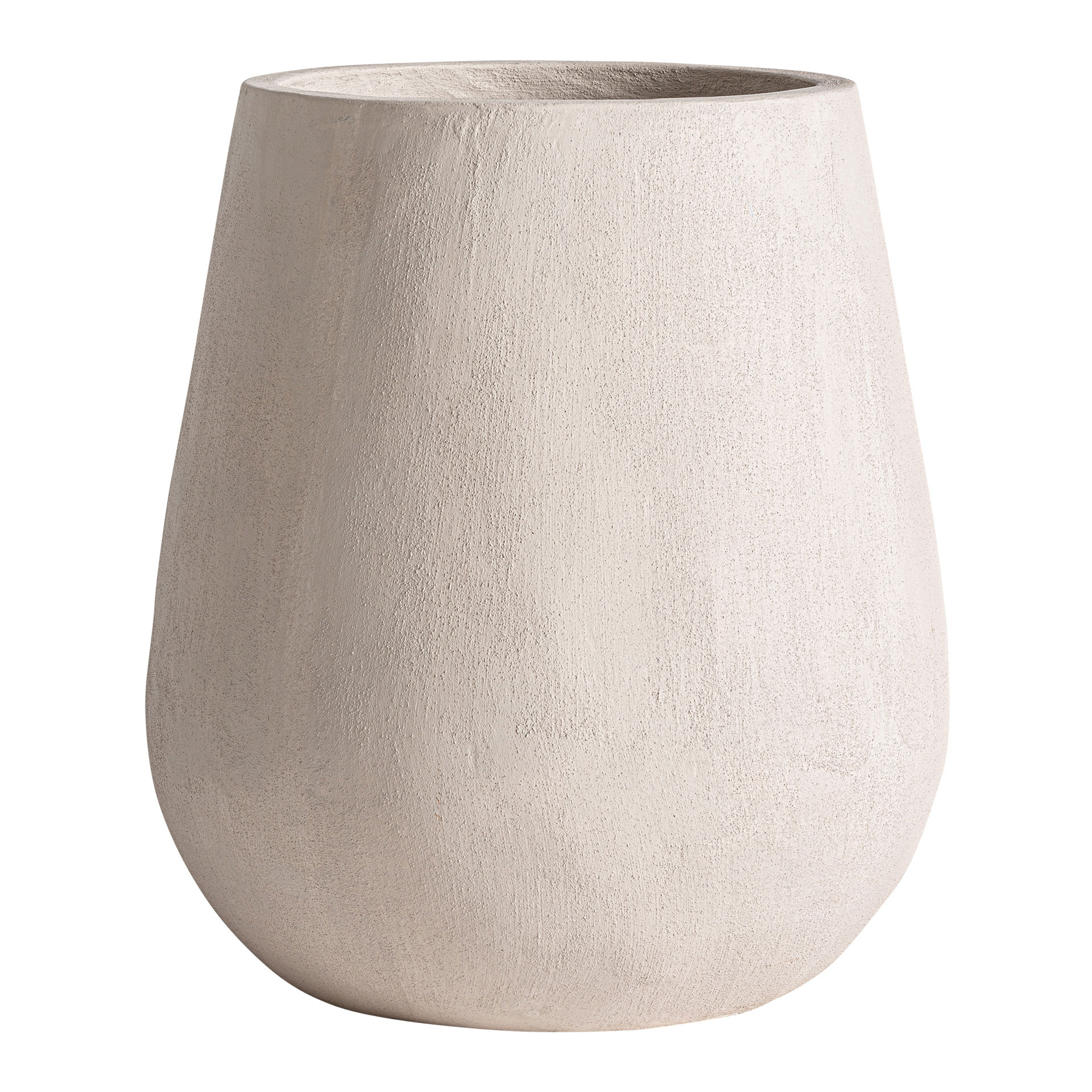 Tinaja Stevie de estilo contemporáneo fabricado en cemento en color beige combinado con fibra de vidrio.