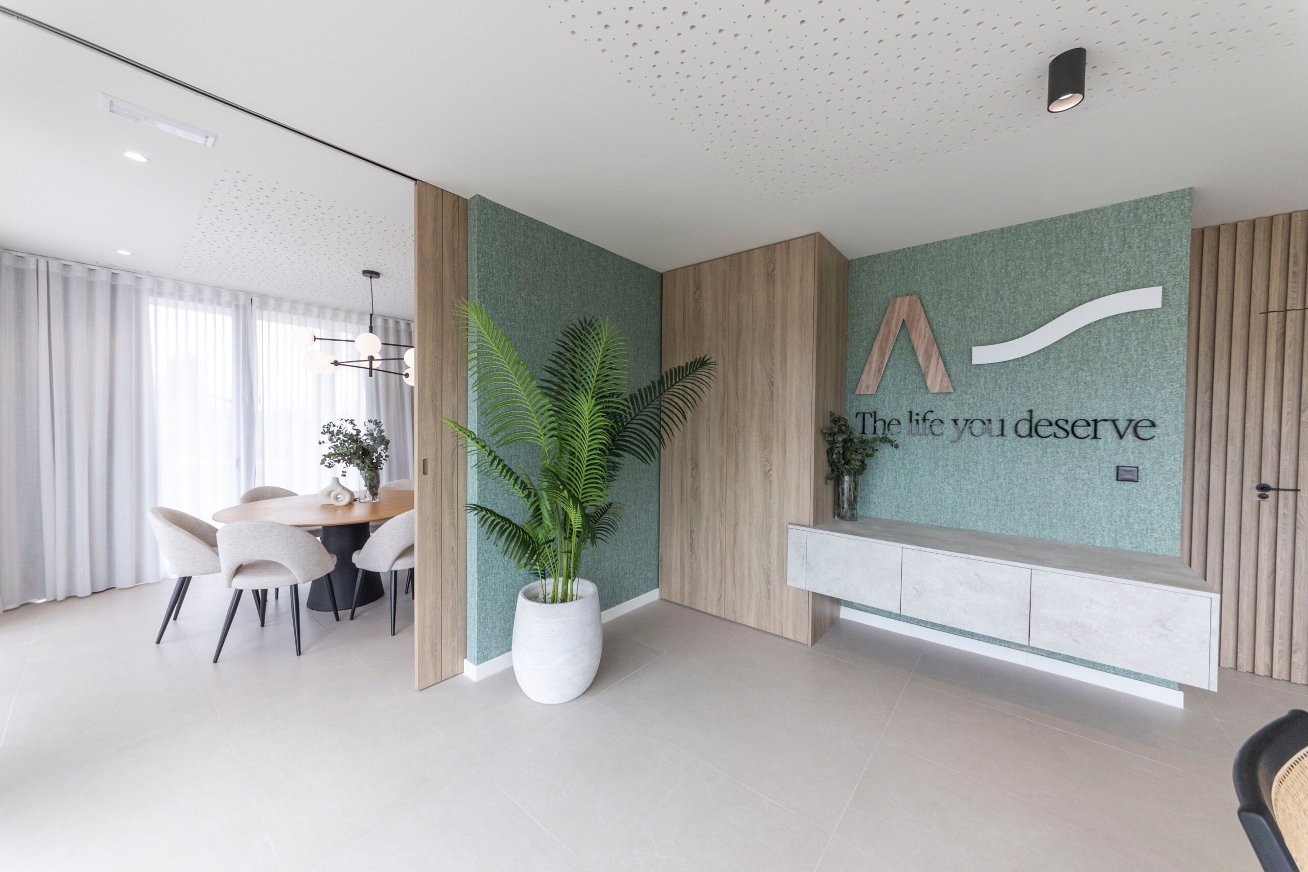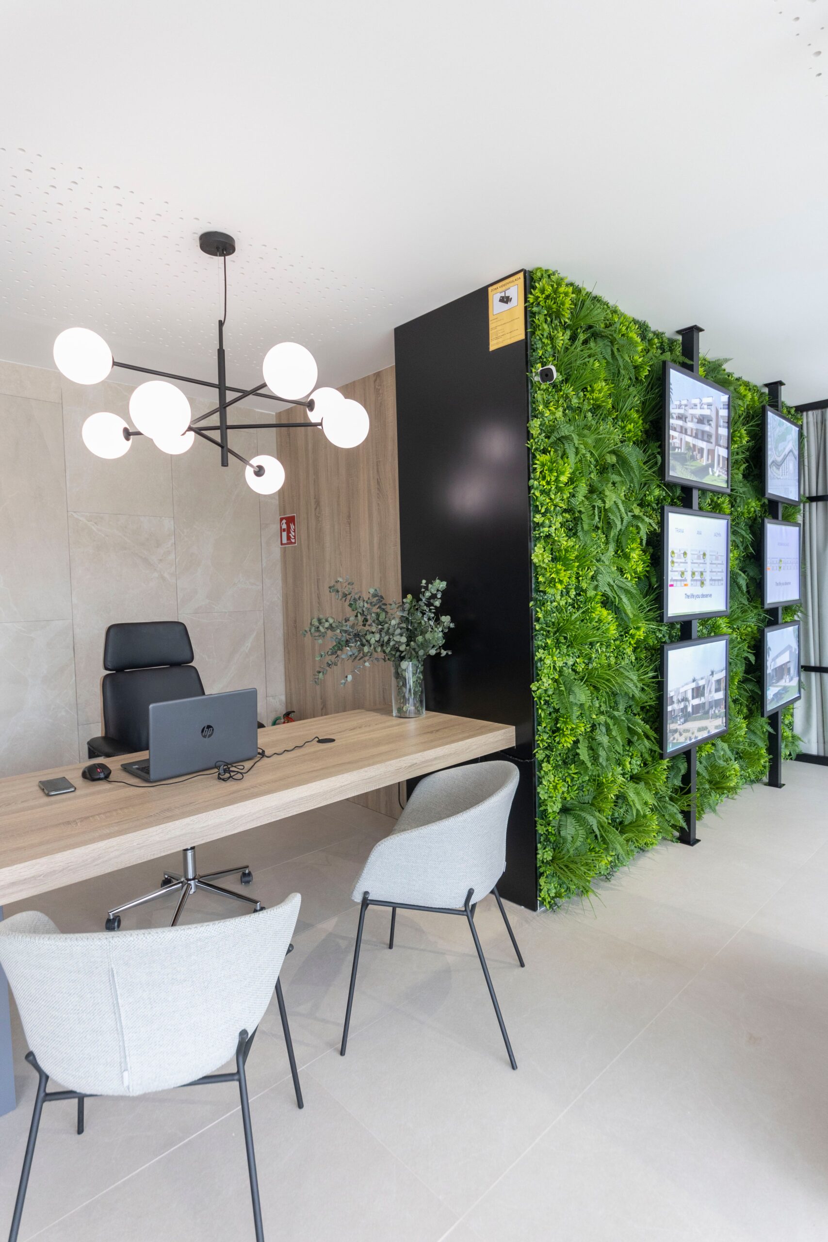 Este proyecto de interiorismo ha sido diseñado para ofrecer un entorno laboral que combine funcionalidad, confort y estilo moderno. La oficina destaca por su atmósfera abierta y luminosa, donde la elegancia se fusiona con la naturaleza a través de los detalles verdes, las plantas y el uso de materiales como la madera. Cada espacio se ha concebido para favorecer tanto la productividad como el bienestar de quienes lo habitan.